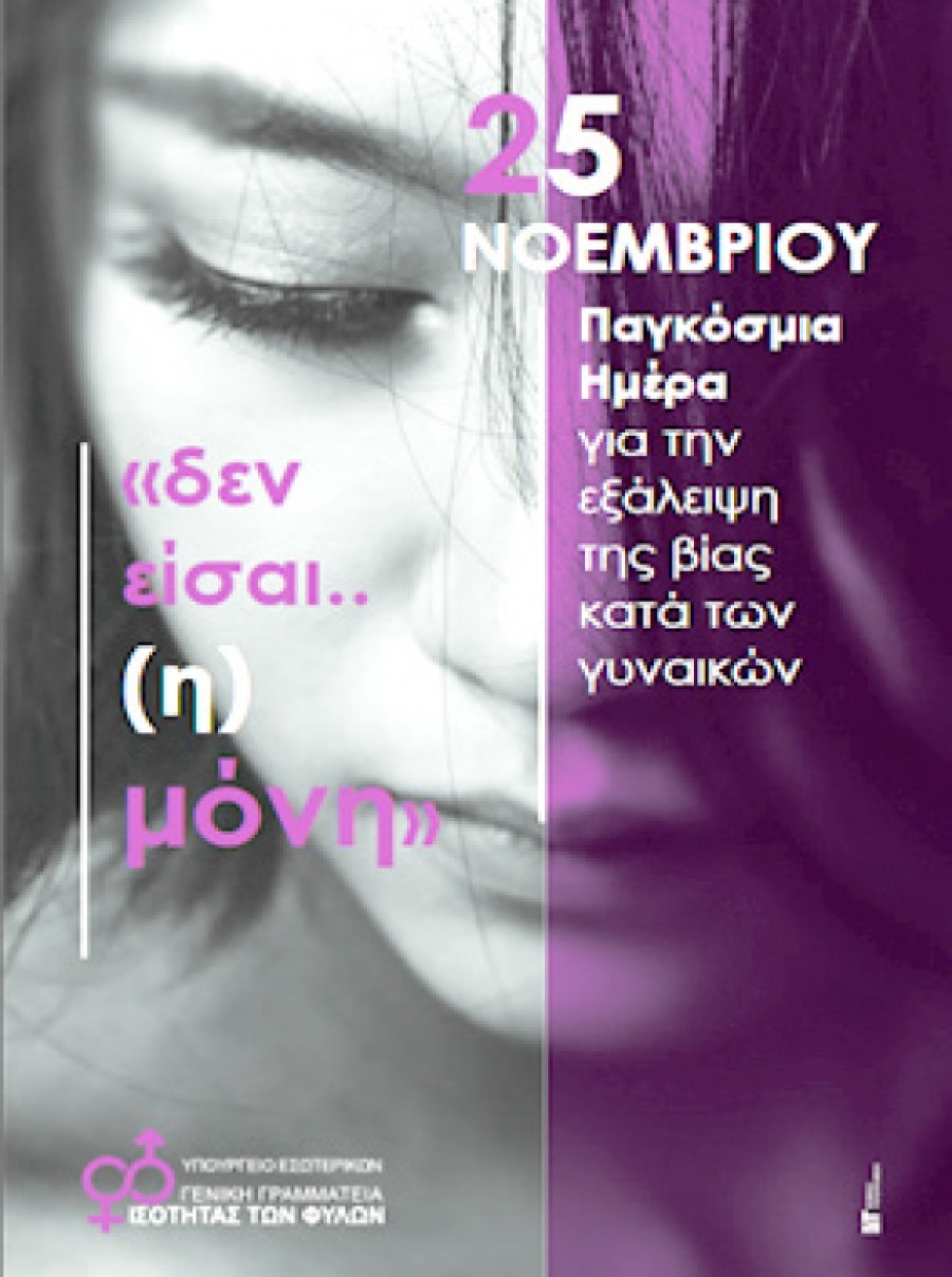Η προχθεσινή ημέρα της 25ης Νοεμβρίου έχει ανακηρυχθεί ως η Παγκόσμια Ημέρα για την Εξάλειψη της Βίας κατά των Γυναικών. 1 στις 3 γυναίκες στην Ευρώπη και 1 στις 4 στη χώρα μας έχουν υποστεί βία κάποια στιγμή στη ζωή τους. Σκοπός του νόμου 3500/2006 για την αντιμετώπιση της ενδοοικογενειακής βίας είναι η αποτροπή των φαινομένων μετατροπής της οικογένειας σε τόπο ατιμώρητης καταπάτησης των ανθρωπίνων δικαιωμάτων.