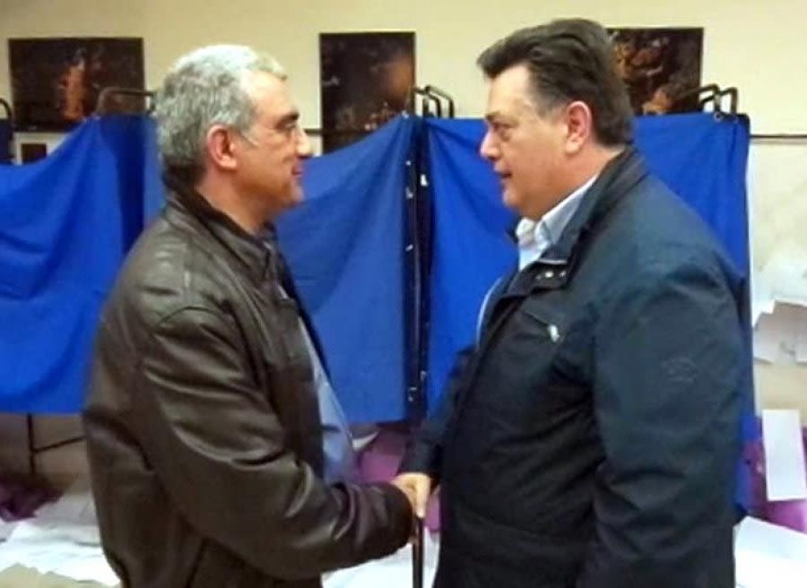 Γιώργος Μπίκας και Τάσος Γιάγκογλου μέσα σε φιλικό κλίμα αντάλλαξαν χειραψία, ευχές και συγχαρητήρια.