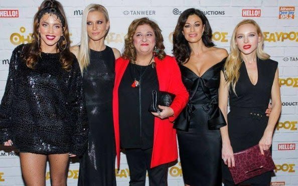 Την περασμένη Τετάρτη έγινε η επίσημη πρεμιέρα της ταινίας «Ο Θησαυρός», στην οποία συμμετέχει και η δική μας Μάγδα Πένσου. Πρόκειται για το ριμέικ της αγαπημένης ταινίας του παλιού καλού ελληνικού κινηματογράφου «Ο Θησαυρός του μακαρίτη». Στη φωτογραφία η Μάγδα με τις γυναίκες συμπρωταγωνίστριες Κατερίνα Στικούδη, Ελισάβετ Κωνσταντινίδη, Δωροθέα Μερκούρη και Φαίη Ξυλά. Ανάμεσα στο ανδρικό καστ, Χαϊκάλης, Τσιμιτσέλης και Καλυβάτσης, με την ταινία να παίζεται και σε Βέροια και Νάουσα και να υπόσχεται πολύ γέλιο!