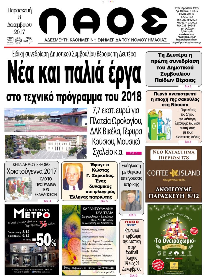 Πρωτοσέλιδο 8 Δεκ 2017