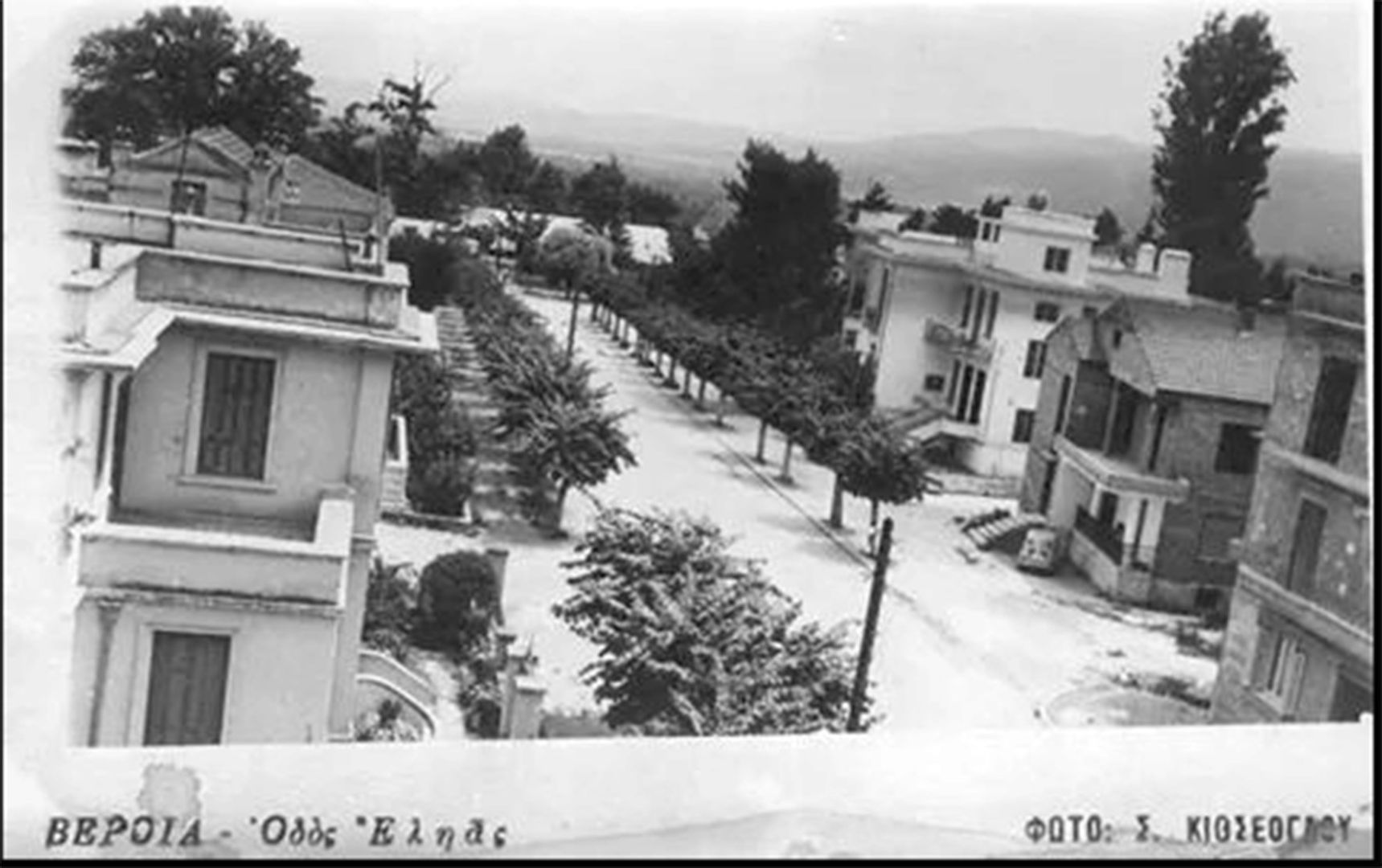 Στη σειρά η οικία Χριστοδούλου, η κυρία Δόξα ψυχή του Γηροκομείου Βεροίας, ο Φάνης Σύρπης και η Αλίκη. Πιό πάνω ο Κούλης . Το παλιό Νοσοκομείο που γεννήθηκα. Η οδός Ελιάς των παιδικών μου χρόνων. Οι πολυκατοικίες της οδού ήρθαν χρόνια μετά. Τα αυτοκίνητα ελάχιστα, οι τριανταφυλλιές του σπιτιού στα χέρια του κυρ Ζαφείρη, το υπόγειο με το πλυσταριό και την μαυρίλα του κάρβουνου.