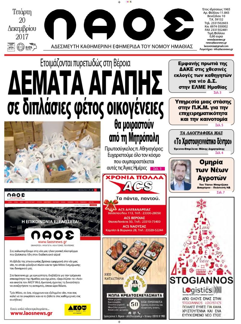 ΔΕΜΑΤΑ ΑΓΑΠΗΣ σε διπλάσιες φέτος οικογένειες θα μοιραστούν από τη Μητρόπολη