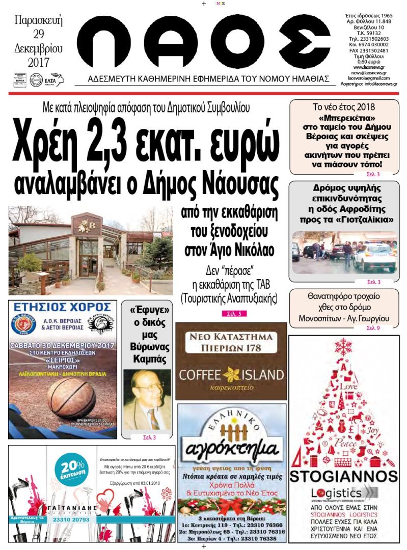 - Χρέη 2,3 εκατ. ευρώ αναλαμβάνει ο Δήμος Νάουσας από την εκκαθάριση του ξενοδοχείου στον Άγιο Νικόλαο