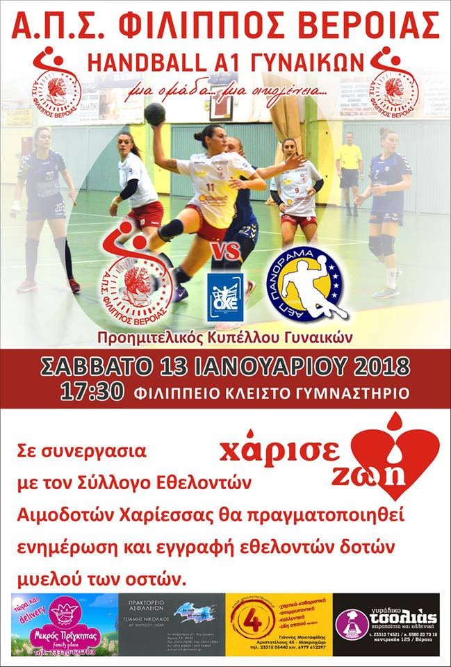 - Το Σάββατο 13/01/2018 στις 17:30 στο Φιλίππειο Κλειστό Γυμναστήριο ο Φίλιππος υποδέχεται το Πανόραμα στα πλαίσια της Προημιτελικής Φάσης του Κυπέλλου Γυναικών 2017-2018. Ο Φίλιππος θέλει να ξεκινήσει με νίκες το 2018, και η νίκη στον συγκεκριμένο αγώνα θα του δώσει ένα από τα τέσσερα εισιτήρια του Final 4 του Κυπέλλου Γυναικών.