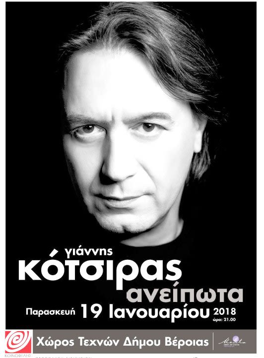 Την Παρασκευή 19 Ιανουαρίου στο Χώρο Τεχνών Βέροιας ΓΙΑΝΝΗΣ ΚΟΤΣΙΡΑΣ “Ανείπωτα”