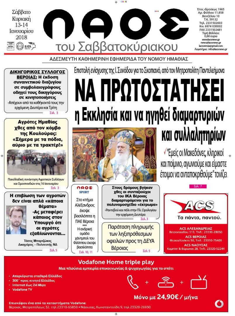 - Επιστολή ενίσχυσης της Ι. Συνόδου για το Σκοπιανό, από τον Μητροπολίτη Παντελεήμονα