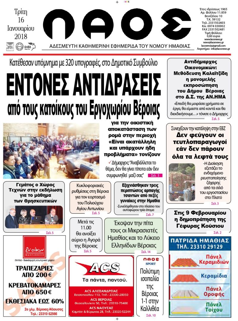Πρωτοσέλιδο 16 Ιαν. 2018