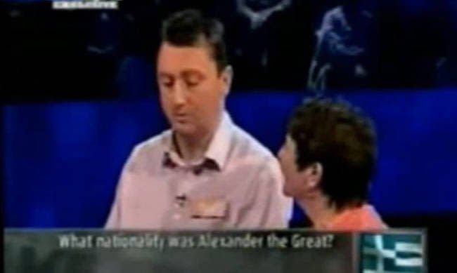 Μια παλιά αγγλική τηλεοπτική εκπομπή γνώσεων επανήλθε στο προσκήνιο λόγω της επικαιρότητας. Ο νεαρός Άγγλος παίκτης ρωτιέται από τον παρουσιαστή ποιας εθνικότητας ήταν ο Μέγας Αλέξανδρος. Απαντά με αρκετή σιγουριά: “Έλληνας”. Λίγα δευτερόλεπτα αργότερα, η απάντησή του χαρακτηρίζεται λανθασμένη, αφού εμφανίζεται ως σωστή απάντηση το “Μακεδόνας”…