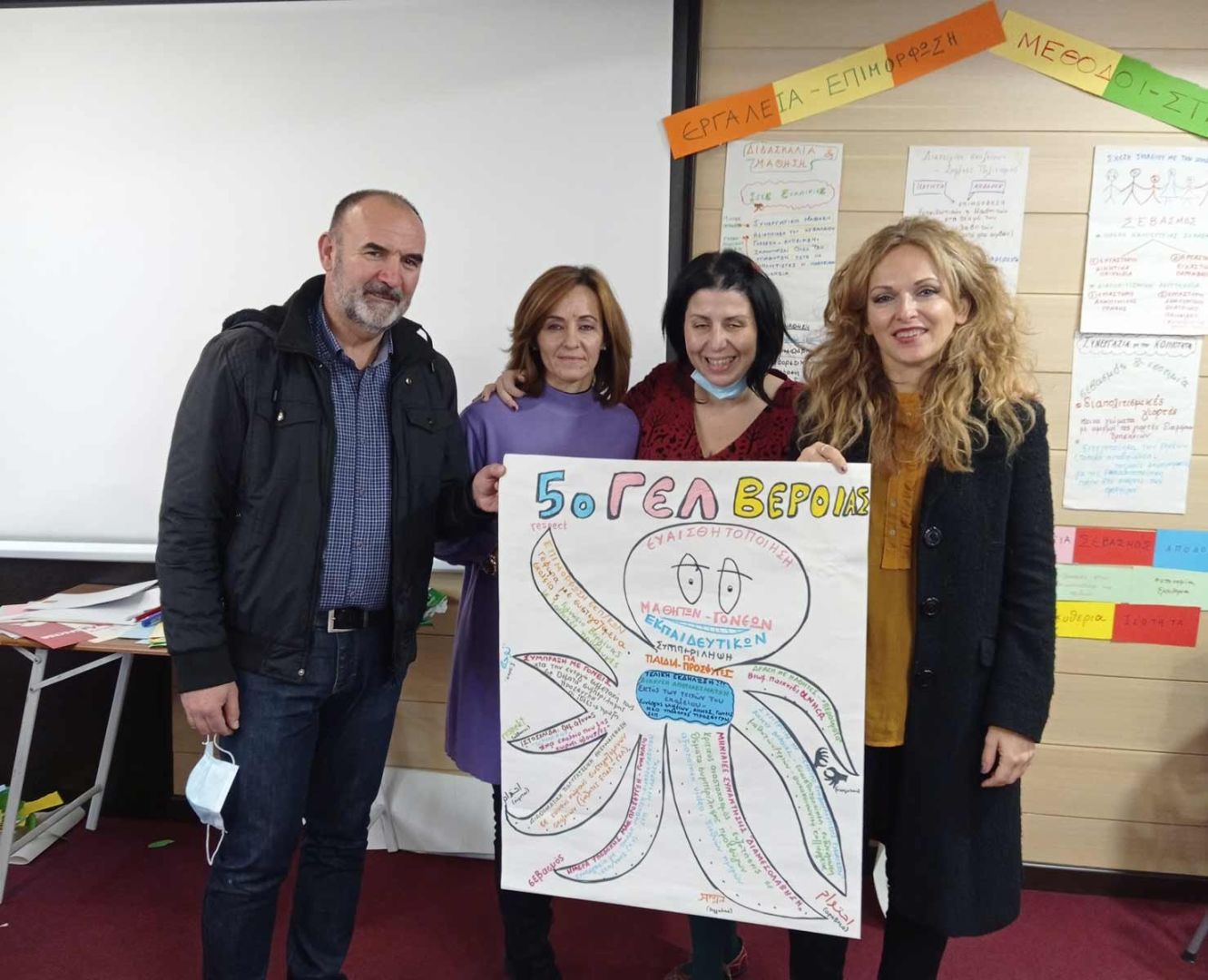 Το τριήμερο 26-28/11/2021 η ομάδα δράσης του 5ου ΓΕΛ Βεροίας που συντονίζει τη συμπερίληψη των παιδιών-προσφύγων και αποτελείται από τον διευθυντή της σχολικής μονάδας, κ. Σταμάτιο Χρυσή, την εκπαιδευτικό, την κ. Χάρη Αξούριστου ως εκπρόσωπο του Συλλόγου Διδασκόντων, και την κ. Καλλιόπη Σιούτη ως εκπρόσωπο του Συλλόγου Γονέων και Κηδεμόνων του σχολείου, συμμετείχαν στην Ακαδημία επιμόρφωσης που οργάνωσε το Ευρωπαϊκό Κέντρο Wergeland (EWC) και τελούσε υπό την αιγίδα του Υπουργείου Παιδείας, Έρευνας και Θρησκευμάτων, με την υποστήριξη του Ινστιτούτου Εκπαιδευτικής Πολιτικής (ΙΕΠ).
