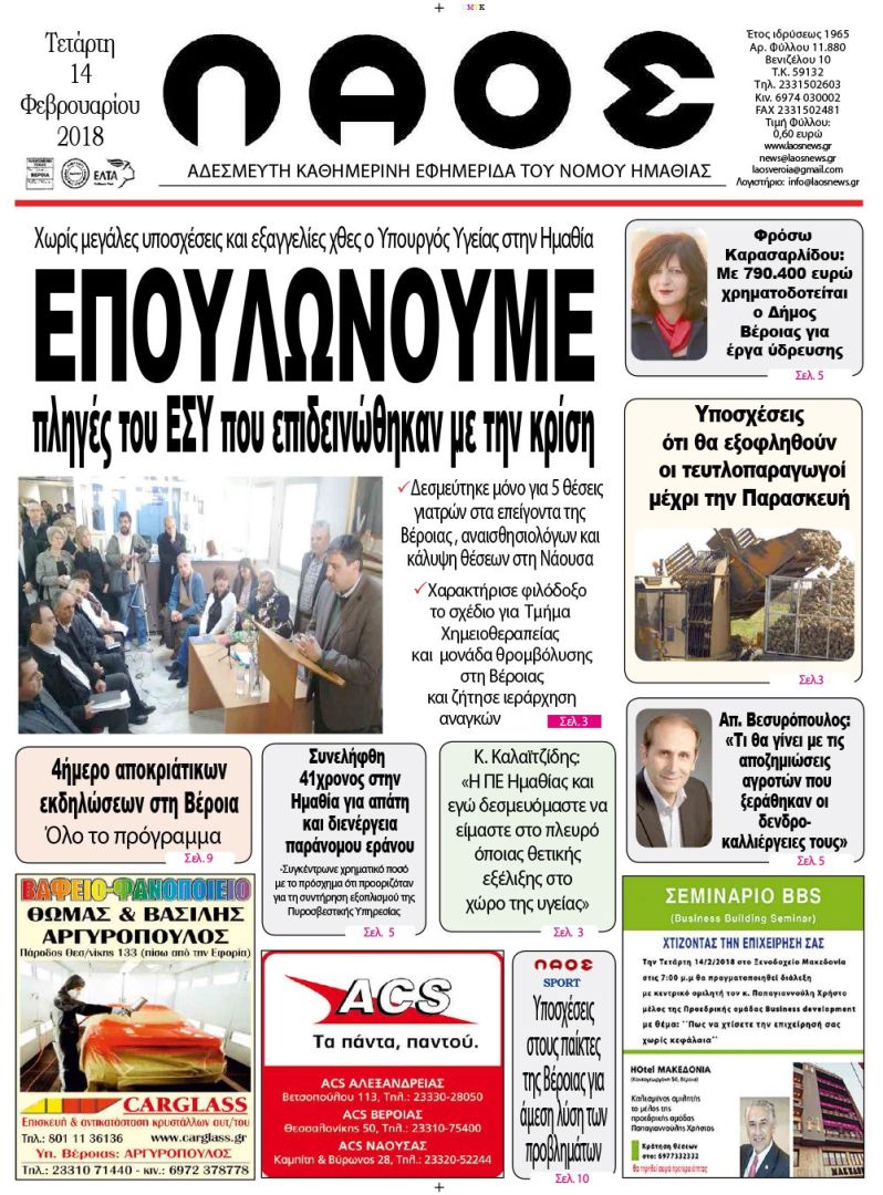 Πρωτοσέλιδο 14 Φεβ. 2018
