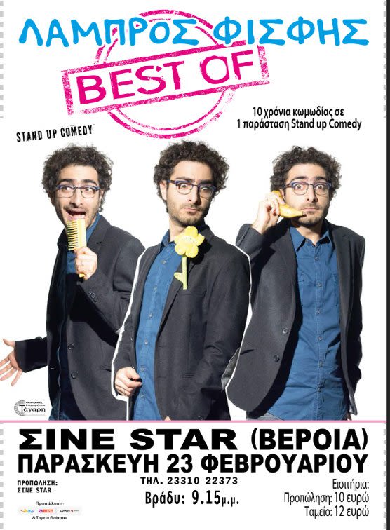 Μετά από 10 χρόνια συνεχούς παρουσίας στο Stand up Comedy και έχοντας στο ενεργητικό του δύο one man show, εκατοντάδες παραστάσεις και συνολικά πάνω από 6 ώρες υλικού ο Λάμπρος Φισφής μαζεύει τις μεγαλύτερες επιτυχίες του, τον χρυσό του δίσκο, τα μεγάλα σουξέ και τα ενώνει σε μια παράσταση «Best Of» που υπόσχετε να σας κάνει να πονάτε από τα γέλια.