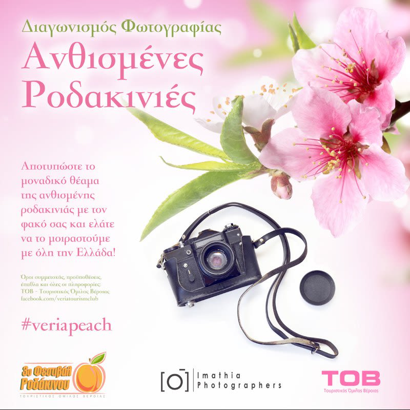 Στα πλαίσια του 3ου Φεστιβάλ Ροδάκινου, ο Τουριστικός Όμιλος Βέροιας σε συνεργασία με τον Σύλλογο Καλλιτεχνών Επαγγελματιών Φωτογράφων Ημαθίας, διοργανώνει φωτογραφικό διαγωνισμό με θέμα τις Ανθισμένες Ροδακινιές.