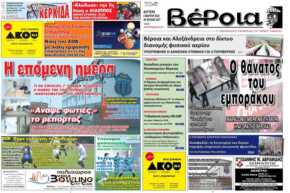 Κυκλοφόρησαν οι εφημερίδες Βέροια και Κερκίδα 5/3