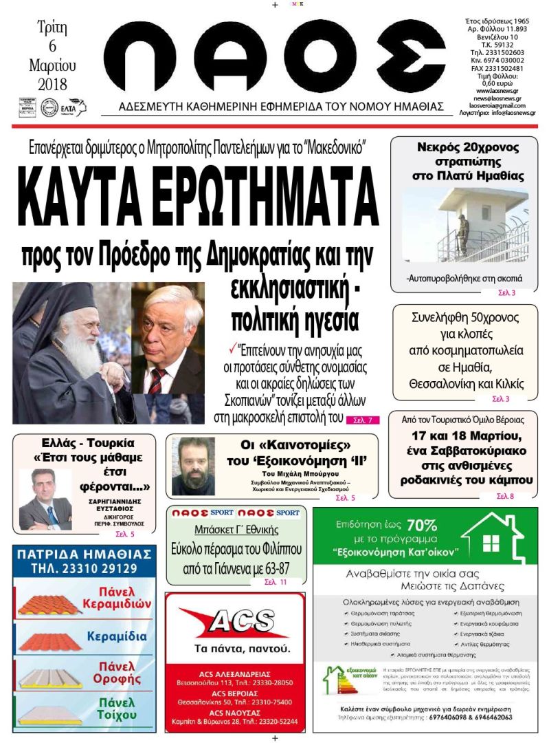 Eπανέρχεται δριμύτερος ο Μητροπολίτης Παντελεήμων για το “Μακεδονικό”