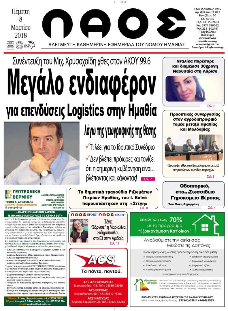 Πρωτοσέλιδο 8 Μαρ. 2018
