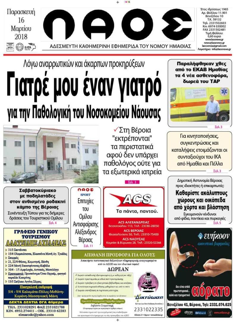 Γιατρέ μου έναν γιατρό για την Παθολογική του Νοσοκομείου Νάουσας