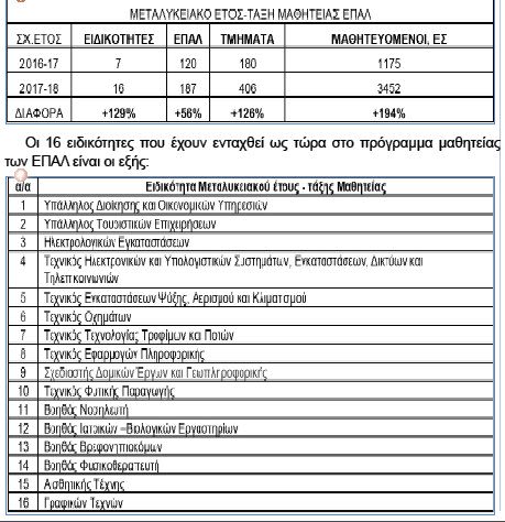 Από το σχολικό έτος 2018-19 Ένταξη νέων ειδικοτήτων των ΕΠΑΛ στα Τμήματα Μαθητείας