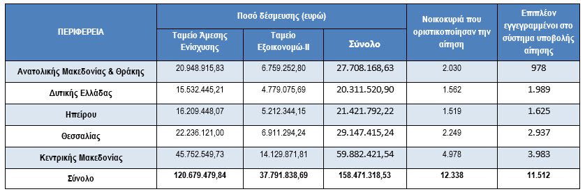 Ολοκληρώθηκε η διαδικασία υποβολής αιτήσεων για το πρόγραμμα «Εξοικονόμηση κατ’ οίκον ΙΙ» στις πέντε Περιφέρειες, Ηπείρου, Θεσσαλίας, Δυτικής Ελλάδας, Ανατολικής Μακεδονίας – Θράκης και Κεντρικής Μακεδονίας. Συνολικά εκδήλωσαν ενδιαφέρον 23.850 νοικοκυριά και ήδη έχουν οριστικοποιηθεί 12.338 αιτήσεις, που δεσμεύουν πόρους 120,7 εκατ. ευρώ από το Ταμείο Άμεσης Ενίσχυσης και 37,8 εκατ. ευρώ από το Ταμείο Εξοικονομώ ΙΙ – συνολικά 158,5 εκατ. ευρώ.