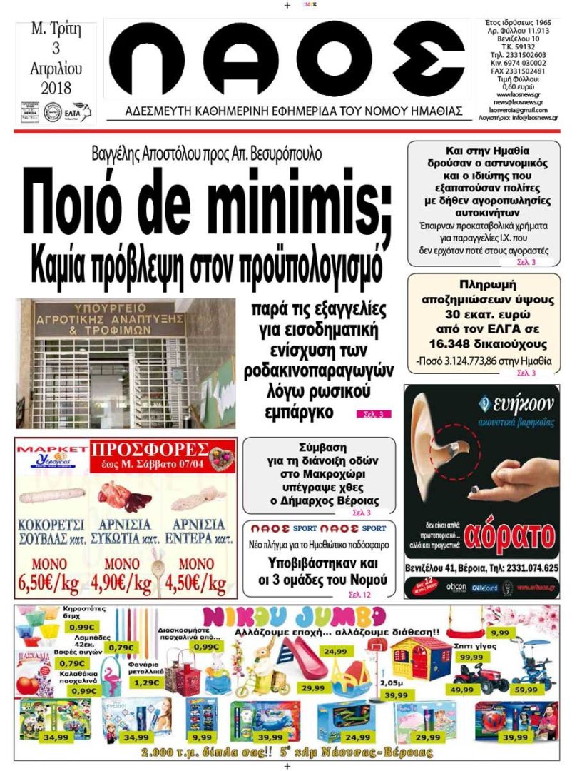 -Ποσό 3.124.773,86 στην Ημαθία