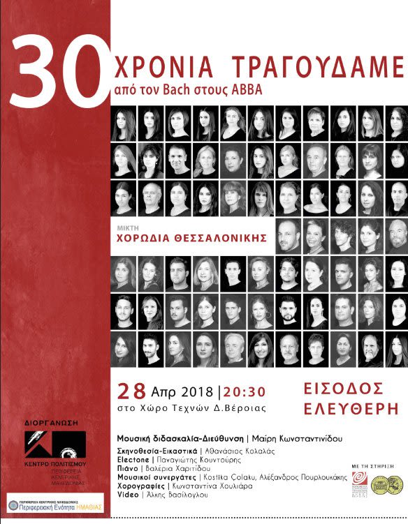 «30 ΧΡΟΝΙΑ ΤΡΑΓΟΥΔΑΜΕ από τον Bach στους ABBA» |με την Μικτή Χορωδία Θεσσαλονίκης | ΧΩΡΟΣ ΤΕΧΝΩΝ ΔΗΜΟΥ ΒΕΡΟΙΑΣ