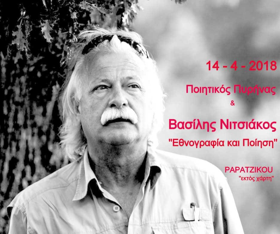 Ο Ποιητικός Πυρήνας παρουσιάζει τον Καθηγητή Κοινωνικής Λαογραφίας του Πανεπιστημίου Ιωαννίνων, Βασίλη Νιτσιάκο με θέμα εκδήλωσης ΄’Εθνογραφία και Ποίηση’’.