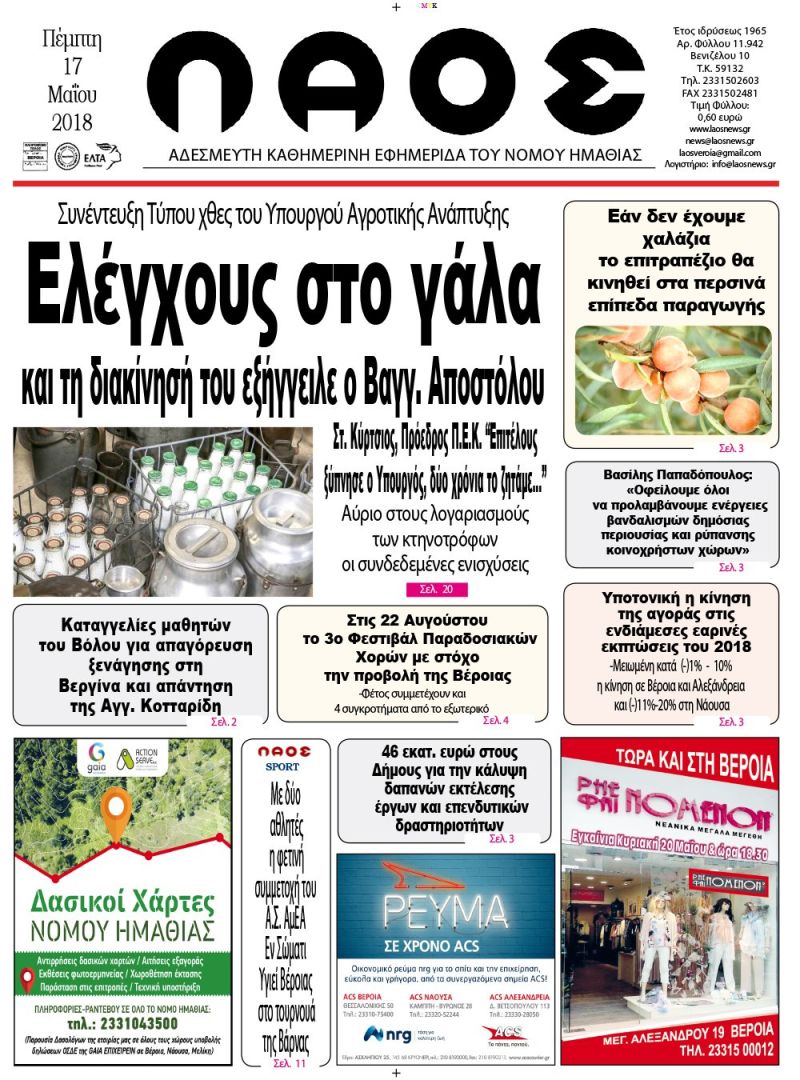Ελέγχους στο γάλα και τη διακίνησή του εξήγγειλε ο Βαγγ. Αποστόλου