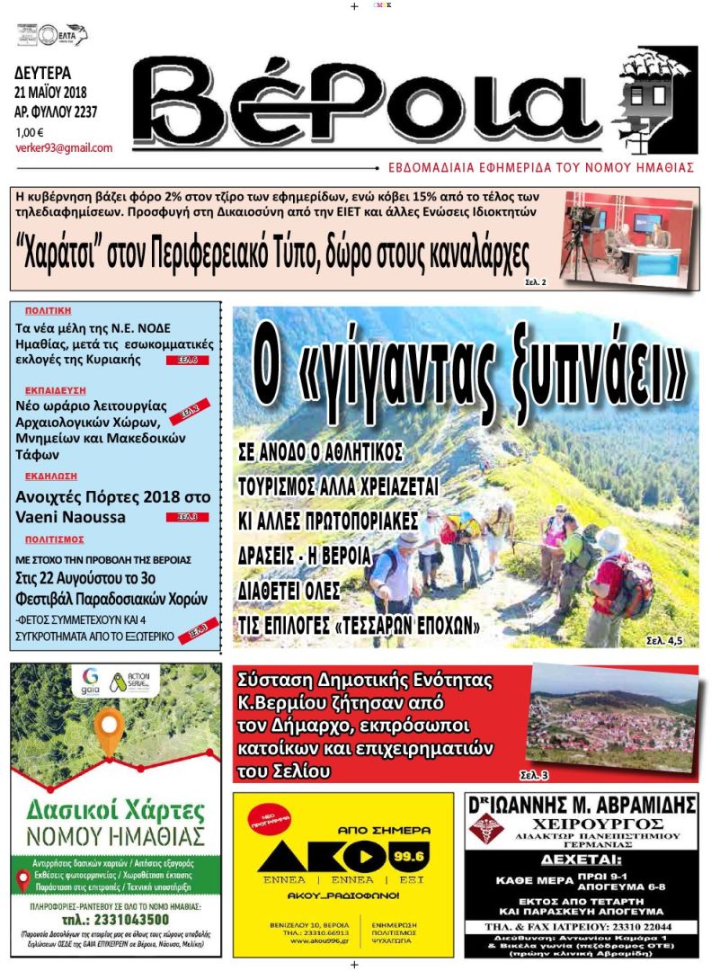 Κυκλοφόρησε σήμερα η εβδομαδιαία εφημερίδα “ΒΕΡΟΙΑ”