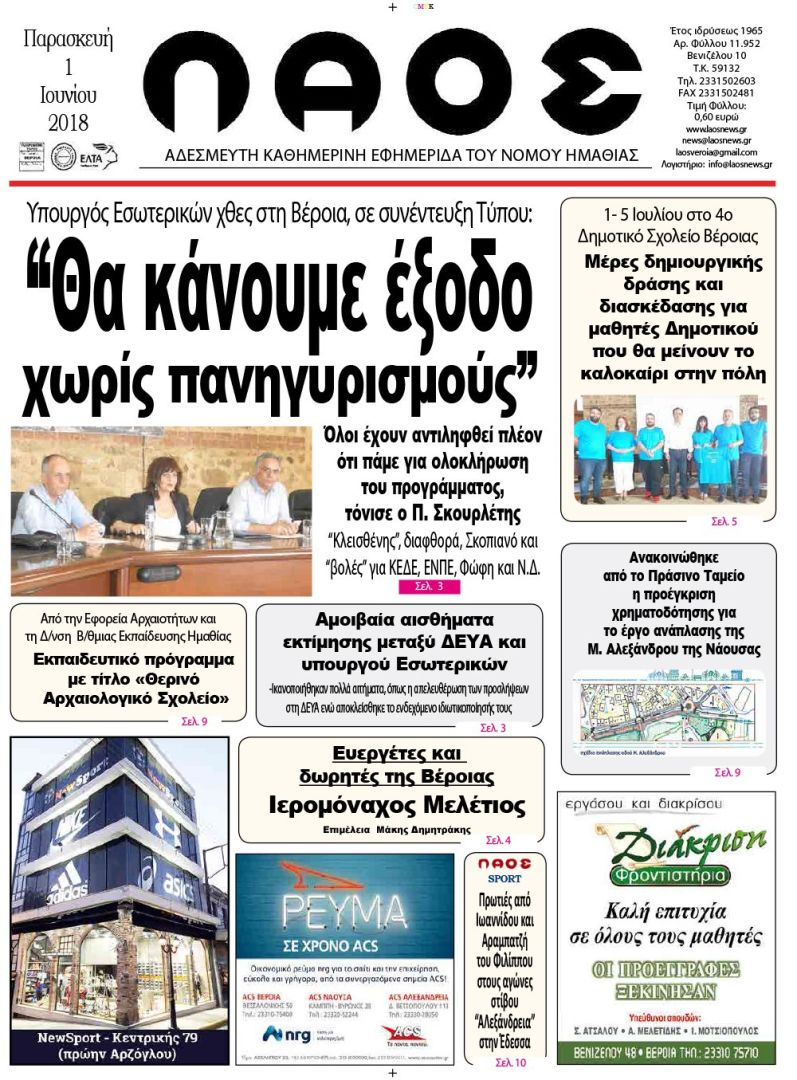Υπουργός Εσωτερικών χθες στη Βέροια, σε συνέντευξη Τύπου: