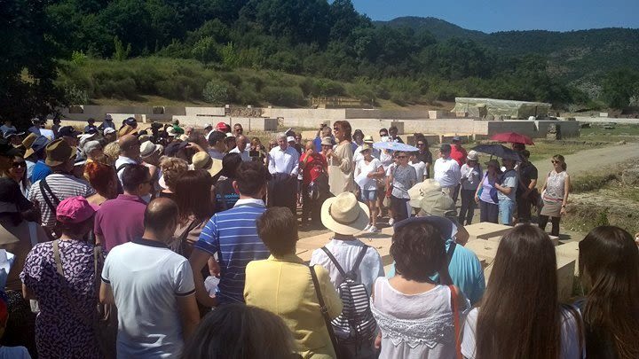 Ακολούθησε η ξενάγηση του κοινού από την κ. Κοτταρίδη στους χώρους του αρχαίου ανακτόρου, όπου οι εργασίες αναστήλωσης βρίσκονται σε πλήρη εξέλιξη, με ορίζοντα ολοκλήρωσης το 2022. Εδώ και αρκετά χρόνια αρκετοί αρχαιολόγοι έχουν χαρακτηρίσει το ανάκτορο του βασιλιά Φιλίππου ως τον “Παρθενώνα της Μακεδονίας”.
