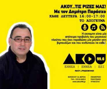 Ένας συνεργάτης μας, ο Δημήτρης Παράσχος, θα συμμετάσχει με την ορχήστρα του στις 11 Ιουνίου στο Ηρώδειο σε μια μεγάλη συναυλία αφιερωμένη στις μουσικές της βόρειας Ελλάδας. Ο γνωστός δεξιοτέχνης του κλαρίνου και μουσικός παραγωγός στον ΑΚΟΥ 99.6, με την εκπομπή για την παραδοσιακή μουσική «΄Ακου τις ρίζες μας» σε μια από τις κορυφαίες στιγμές της μουσικής του καριέρας θα εκπροσωπήσει την Βέροια και την Ημαθία σε μια πανδαισία παραδοσιακής μουσικής. Πολλά συγχαρητήρια στον μουσικό «πρεσβευτή» της περιοχής μας που μας κάνει περήφανους με την εμφάνισή του στον κορυφαίο ίσως πολιτιστικό χώρο της Ελλάδας.