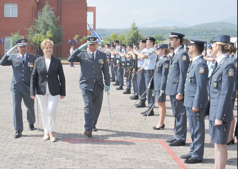 Τα ξίφη στους 32 νέους Υπαστυνόμους Β’ επέδωσε η Υφυπουργός Εσωτερικών (Μακεδονίας – Θράκης), κα. Μαρία Κόλλια – Τσαρουχά συνεπικουρούμενη από τον Γενικό Περιφερειακό Αστυνομικό Διευθυντή Κεντρικής Μακεδονίας, Υποστράτηγο Νικόλαο Ζησιμόπουλο και το Διοικητή της Σχολής, Αστυνομικό Διευθυντή Διονύσιο ΚΟΥΓΚΑ.