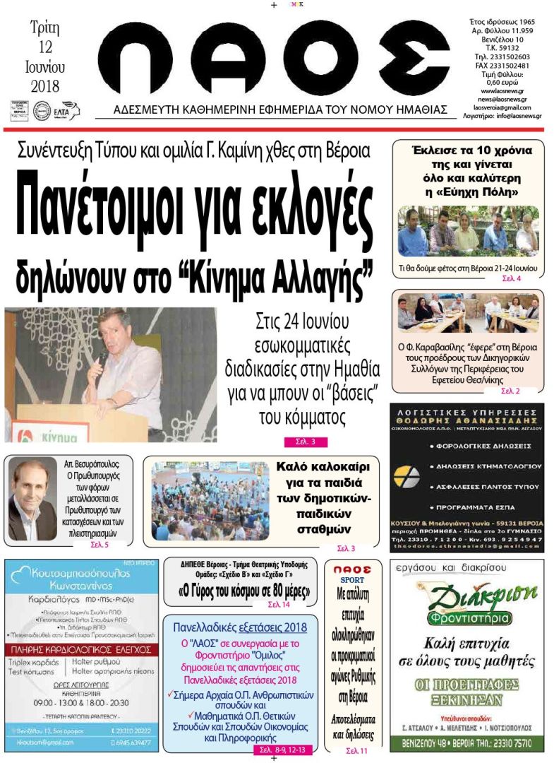 Πρωτοσέλιδο 12 Ιουνίου 2018