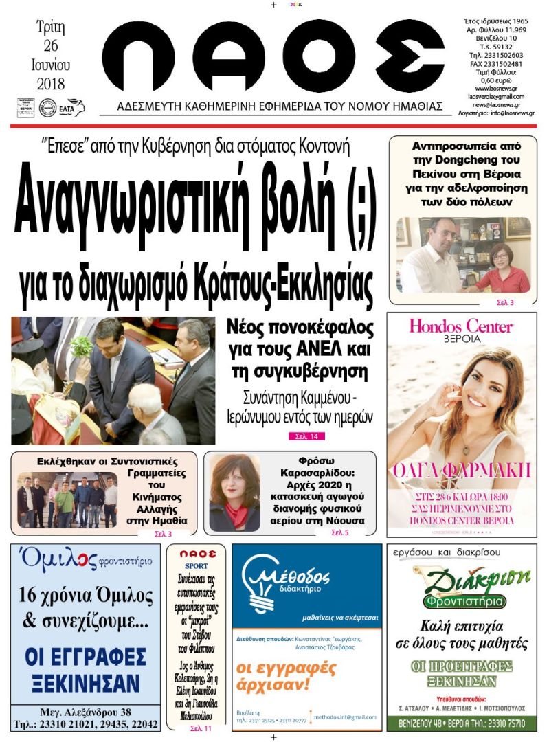 Αναγνωριστική βολή (;) για το διαχωρισμό Κράτους-Εκκλησίας