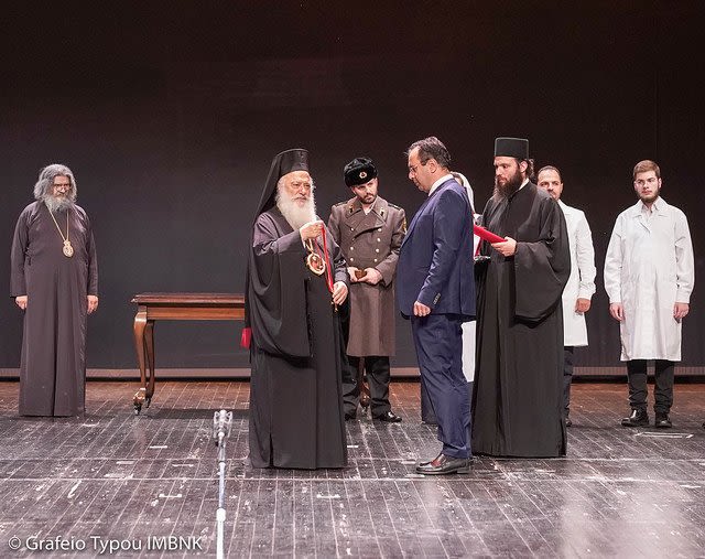 Σε ένδειξη λοιπόν τιμής απένειμε στον Δήμαρχο, τον Χρυσό Σταυρό του Αποστόλου Παύλου, τον οποίο κρέμασε στο λαιμό του Κώστα Βοργιαζίδη. Βαριά τιμή για τον θεσμό που ελπίζουμε να συνεχίσει ευλογημένα!