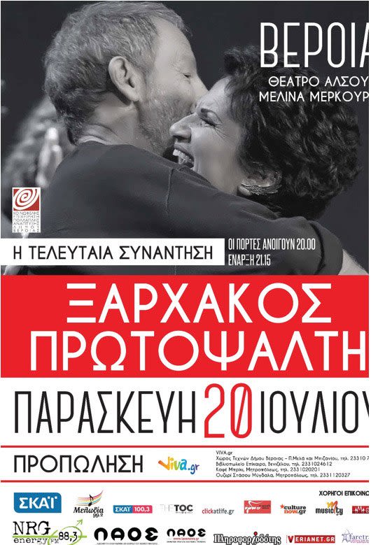 Την υπέροχη αυτή ΣΥΝΑΝΤΗΣΗ θα έχουμε την ευκαιρία να την απολαύσουμε και στο Θέατρο Άλσους «Μελίνα Μερκούρη, στη Βέροια, αυτό το καλοκαίρι. Ο Σταύρος Ξαρχάκος θα βρίσκεται επί σκηνής μαζί με την Άλκηστη Πρωτοψάλτη σε ένα πρόγραμμα που θα διευθύνει ο ίδιος και κατά την διάρκεια του οποίου θα ακουστούν τα ωραιότερα τραγούδια του, χρωματισμένα  με την διακριτική και ακριβή ερμηνεία της ερμηνεύτριας.