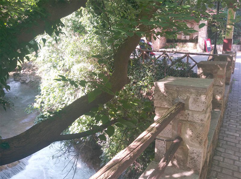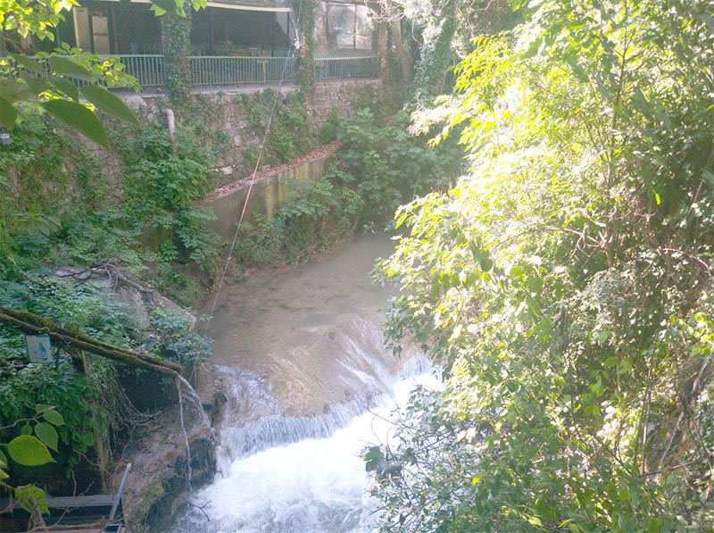 Διασχίζουμε τη μικρή γέφυρα και περνάμε το κατώφλι του εξοχικού κέντρου. Προχωράμε στην αυλή όπου μας αναμένει η έκπληξη. Πολλά πράγματα έχουν αλλάξει και κάποιες τέντες υποκαθιστούν τα πλατάνια που χάριζαν κάποτε τη δροσιά στους επισκέπτες. Και μόνο τα πεντακάθαρα τραπεζάκια εκεί στα κάγκελα και δίπλα στο ποτάμι, θυμίζουν κάτι από την παλιά εποχή.