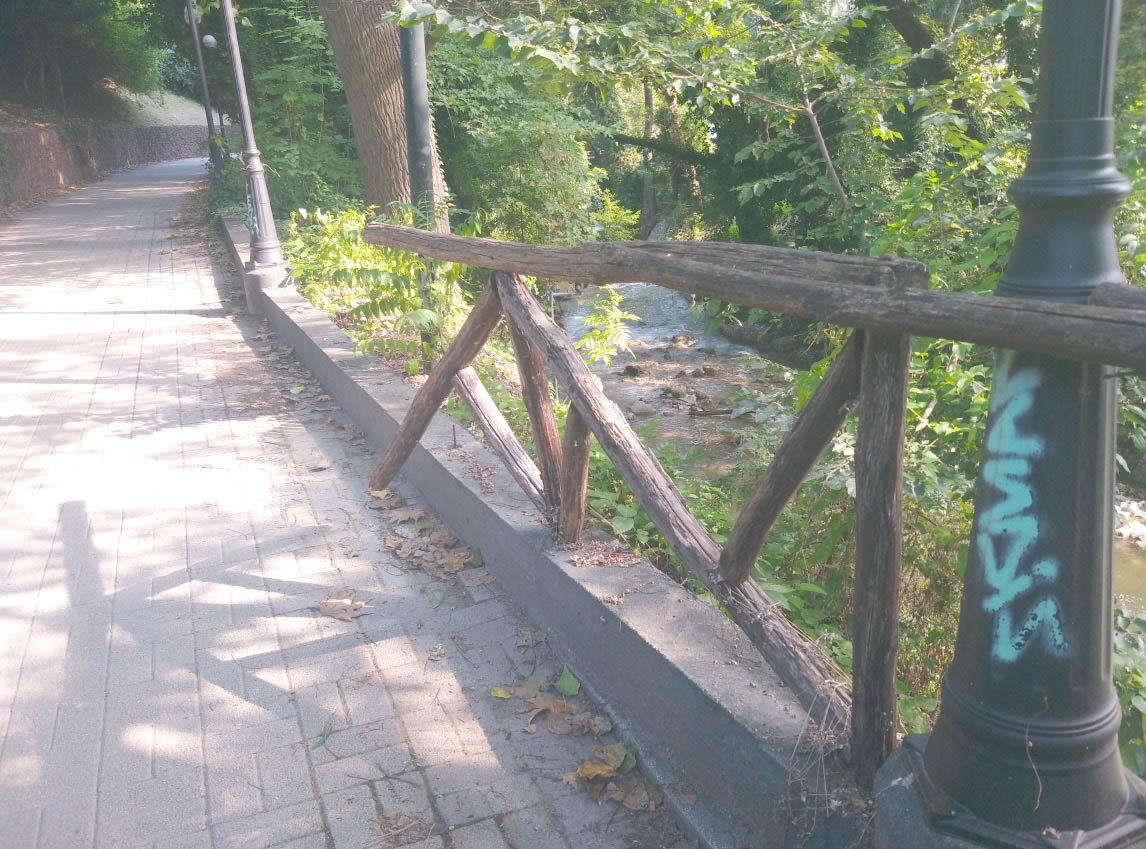 Μετά τη γέφυρα, μας περιμένει απογοήτευση: Κάποια ελεεινά κατάλοιπα κιγκλιδωμάτων στην παρόχθια περιοχή, περιμένουν εδώ και δεκαετίες την αντικατάστασή τους που δεν λέει να έλθει. Ατύχημα μέχρι στιγμής δεν έγινε!
