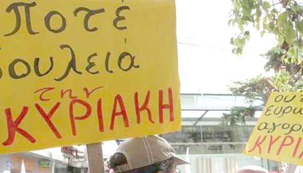 Ο αγώνας των εμποροϋπαλλήλων ενάντια στο άνοιγμα των καταστημάτων και στη δουλειά τις Κυριακές, είναι στην πραγματικότητα αγώνας όλων των εργαζομένων για την υπεράσπιση του 8ωρου, 5νθημερου, 40ωρου, κατάκτηση που εργοδότες και Κυβερνήσεις θέλουν να καταργήσουν.