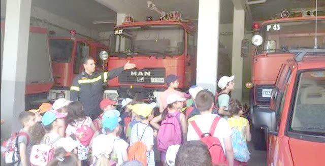 Επίσκεψη στην Πυροσβεστική Υπηρεσία της Νάουσας πραγματοποίησαν οι μαθητές των Εργαστηρίων της Βιβλιοθήκης της ΕΛΠΝ με αφορμή την ενασχόλησή τους με τη θεματική ενότητα «Παιδικά Ατυχήματα». Τα παιδιά ευχαριστήθηκαν πολύ την επίσκεψη γιατί είχαν τη δυνατότητα να ενημερωθούν για σημαντικά θέματα πυρόσβεσης και αυτοπροστασίας από πυρκαγιές. Παράλληλα, παρατήρησαν τα βασικά μέρη της στολής των πυροσβεστών, δοκίμασαν τα κράνη τους, είδαν από κοντά τα διάφορα πυροσβεστικά οχήματα, θαύμασαν και άγγιξαν τις μάνικες αλλά και τον υπόλοιπο εξοπλισμό της πυροσβεστικής και στο τέλος άκουσαν τον ήχο της σειρήνας. Όλα αυτά υπό την καθοδήγηση και εποπτεία του αξιωματικού κ. Μητσιοκάπα Γεωργίου και των υπολοίπων πυροσβεστών, οι οποίοι πρόθυμα, με υπομονή και σε απλό λόγο απαντούσαν σε όλα τα ερωτήματα των μαθητών.