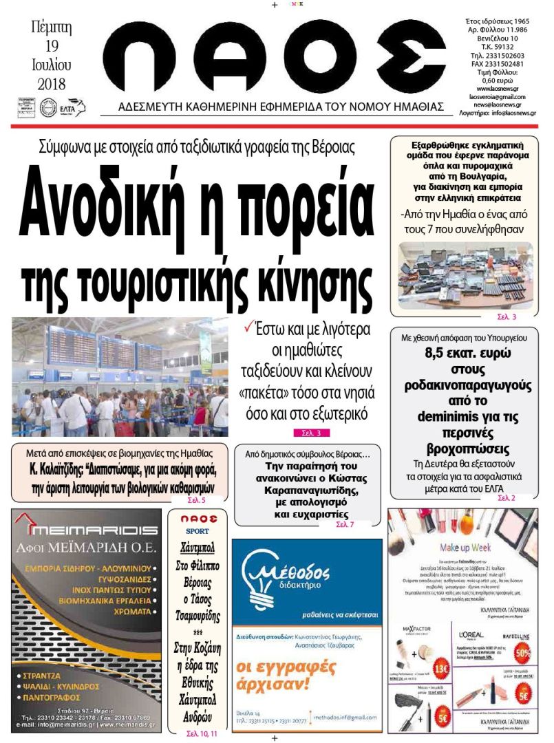 Πρωτοσέλιδο 19 Ιουλίου 2018