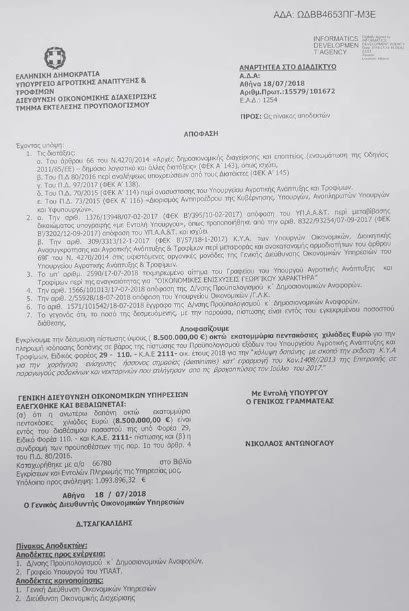 Χθες το πρωί στη Βέροια έγινε το δικαστήριο για τα ασφαλιστικά μέτρα που κατέθεσε η Κοινοπραξία Παραγωγών και Συν/σμών Ημαθίας-Πέλλας κατά του ΕΛΓΑ. Στοιχεία κατέθεσαν, ως μάρτυρες, ο πρόεδρος της Κοινοπραξίας Χρήστος Γιαννακάκης, ο Κώστας Ταμπακιάρης από τον Αγροτικό Συνεταιρισμό Νάουσας και η προϊσταμένη του ΕΛΓΑ Βέροιας Μαρία Παππά. Ο φάκελος με τα στοιχεία που έχουν προσκομιστεί θα εξεταστεί την ερχόμενη Δευτέρα, με την ελπίδα και την πίστη ότι οι παραγωγοί θα δικαιωθούν. Εν τω μεταξύ χθες υπογράφηκε από το Υπουργείο Αγροτικής Ανάπτυξης (φωτό έγγραφο) η έγκριση πίστωσης 8,5 εκ. ευρώ για την πληρωμή των περσινών ζημιών σε ροδάκινα και νεκταρίνια από τις βροχοπτώσεις του Ιουλίου 2017 μέσω του deminimis.
