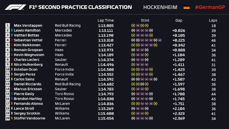 Ο Max Verstappen βρέθηκε στην 4η θέση και πήρε το καλύτερο που μπορούσε από την RB14, μπροστά από τον Romain Grosjean που ήταν ο Best of the Rest σήμερα. Οι δύο Renault έμειναν στις θέσεις 7 και 8, μπροστά από τους Charles Leclerc και Sergio Perez.