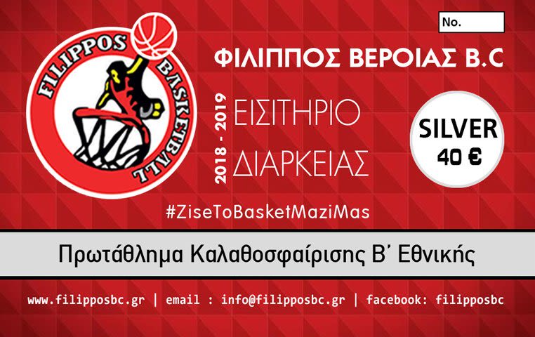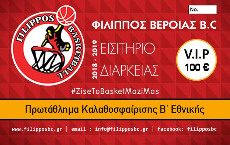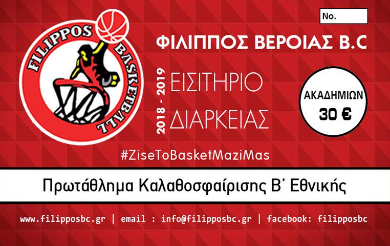 Η ΔΕ του τμήματος καλαθοσφαίρισης του ΑΠΣ ΦΙΛΙΠΠΟΣ ΒΕΡΟΙΑΣ ανακοινώνει την επίσημη έναρξη διάθεσης των εισιτηρίων διαρκείας για την αγωνιστική περίοδο 2018-19, που θα βρει την ομάδα να αγωνίζεται στον Βόρειο Όμιλο της Β´ Εθνικής Κατηγορίας.