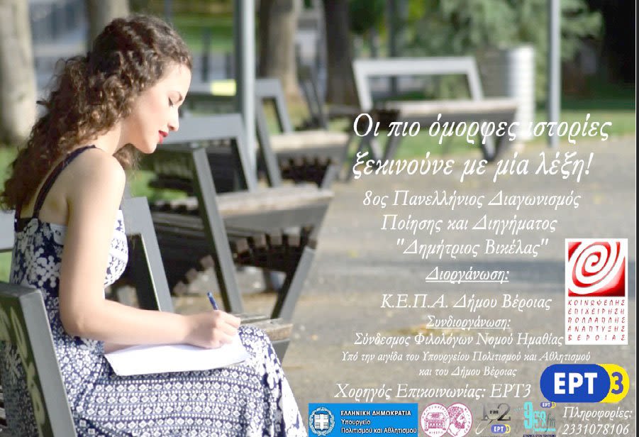 Η «ΚΟΙΝΩΦΕΛΗΣ ΕΠΙΧΕΙΡΗΣΗ ΠΟΛΛΑΠΛΗΣ ΑΝΑΠΤΥΞΗΣ (Κ.Ε.Π.Α.) ΔΗΜΟΥ ΒΕΡΟΙΑΣ» και ο «ΣΥΝΔΕΣΜΟΣ ΦΙΛΟΛΟΓΩΝ ΝΟΜΟΥ ΗΜΑΘΙΑΣ» διοργανώνουν τον 8ο Πανελλήνιο Διαγωνισμό Ποίησης και Διηγήματος «ΔΗΜΗΤΡΙΟΣ ΒΙΚΕΛΑΣ».