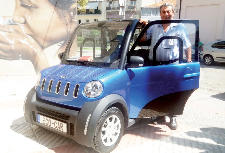 Το μικρό Ι.Χ. είναι καθαρά ηλεκτρικό, φορτίζει στην πρίζα το βράδυ με λιγότερο από 1 ευρώ και η ενέργειά του κρατάει για 100 χιλιόμετρα. Είναι αυτόματο με 2 ταχύτητες, το κοντέρ φτάνει μέχρι τα 80 χιλ. την ώρα τελική ταχύτητα, ζυγίζει 600 κιλά, έχει γκάζι και φρένο, κλιματισμό, GPS κ.ά.