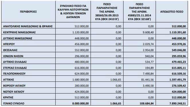 Τα ποσά, θα αποδοθούν στις δικαιούχους Περιφέρειες, με χρηματική εντολή του Υπουργείου προς το Ταμείο Παρακαταθηκών και Δανείων.
