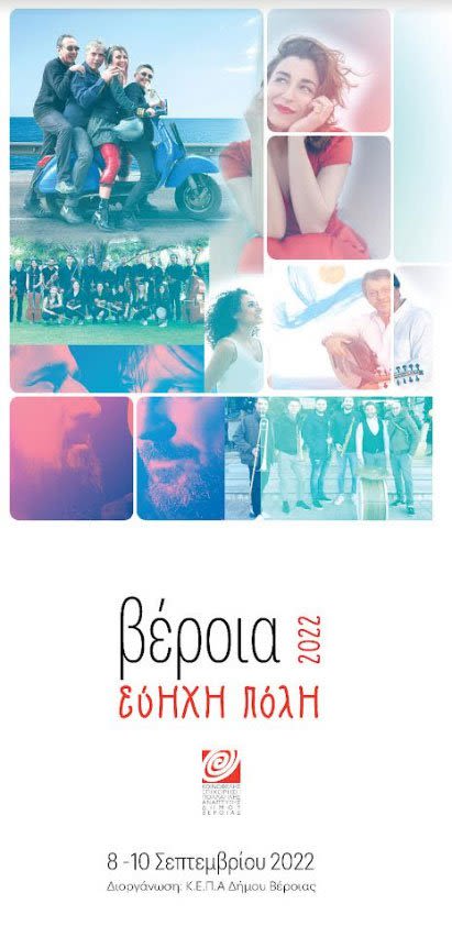 Από την ΚΕΠΑ Δήμου Βέροιας ανακοινώθηκε το πρόγραμμα του φεστιβάλ “Βέροια Εύηχη Πόλη”, που ξεκινάει από την Πέμπτη 8 Σεπτεμβρίου και ολοκληρώνεται στις 10 Σεπτεμβρίου.