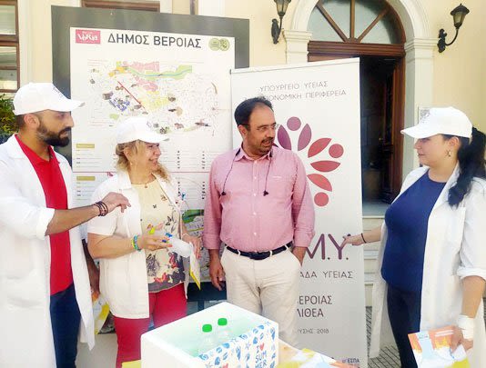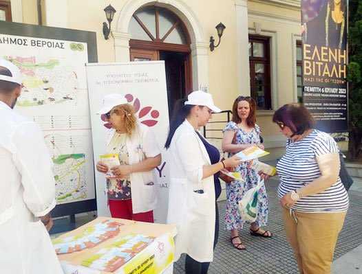 Οι θερμοκρασίες άρχισαν να ανεβαίνουν και οι επαγγελματίες υγείας της 8ης ΤΟΜΥ Καλλιθέας του δήμου Βέροιας, ενημέρωσαν τους πολίτες, χθες Πέμπτη στην πλατεία δημαρχείου, για τα μέτρα προφύλαξης κατά του καύσωνα, για τις ομάδες υψηλού κινδύνου καθώς και για τις πρώτες βοήθειες σε περιστατικά με θερμική εξάντληση ή θερμοπληξία, μοιράζοντας έντυπο ενημερωτικό υλικό και μπουκαλάκια με νερό.