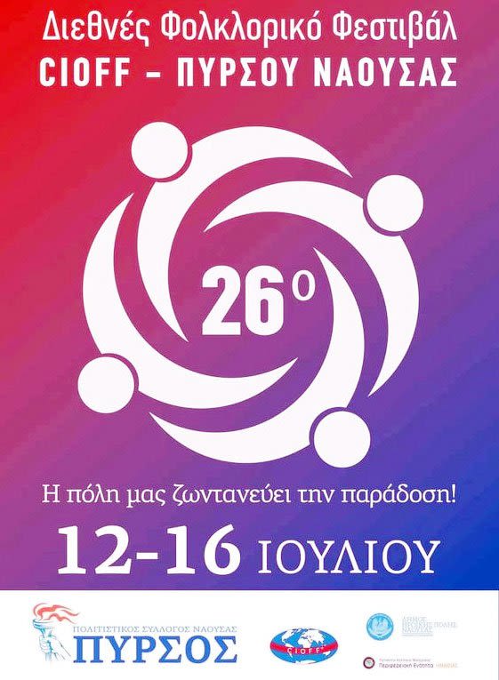Με πρωτότυπο πρόγραμμα εκδηλώσεων επέστρεψε φέτος ο θεσμός του διεθνούς Φεστιβάλ CIOFF-Πυρσού Νάουσας και υπόσχεται να χαρίσει αξέχαστες εμπειρίες στην πόλη και σε όσους το παρακολουθήσουν. Μέχρι τις 16 Ιουλίου η Νάουσα θα φιλοξενήσει 200 περίπου μουσικούς και χορευτές από πέντε χώρες και συγκεκριμένα από την Χιλή, την Γεωργία, την Πορτογαλία, την Σερβία και την Ελλάδα. Το απόγευμα ο δήμαρχος καλωσόρισε τους χορευτές και το βράδυ έγινε η τελετή έναρξης στο Θερινό Δημοτικό Θέατρο.