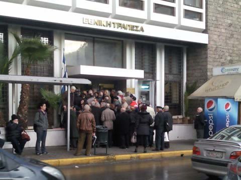 Φθάσαμε στην τράπεζα περίπου 12.30 το μεσημέρι και περιμέναμε υπομονετικά στη σειρά που υπήρχε έξω από την τράπεζα, στο πεζοδρόμιο,  για να εξυπηρετηθούμε σε γραφείο. Οι πελάτες που περίμεναν ήταν πολλοί. Η ώρα πήγε 2 παρά τρία λεπτά και η υπεύθυνη εισόδου των πελατών στο κατάστημα  βγήκε και μας ενημέρωσε ότι δεν είναι δυνατόν να εξυπηρετηθούμε διότι έκλεισε για το κοινό η τράπεζα.